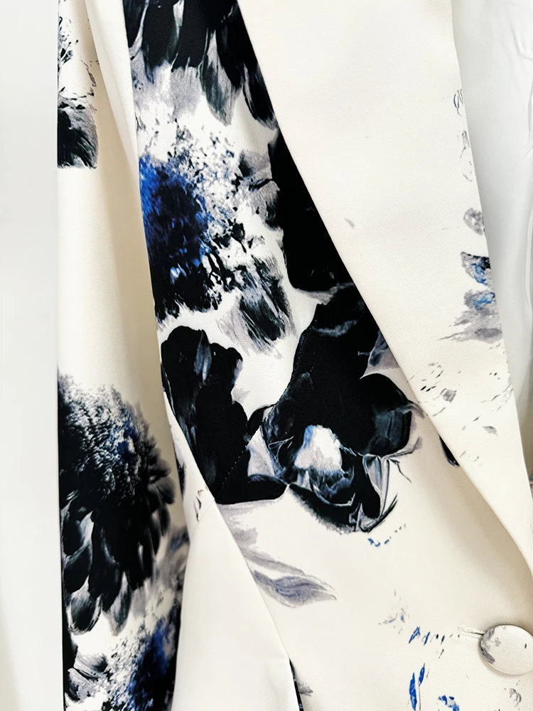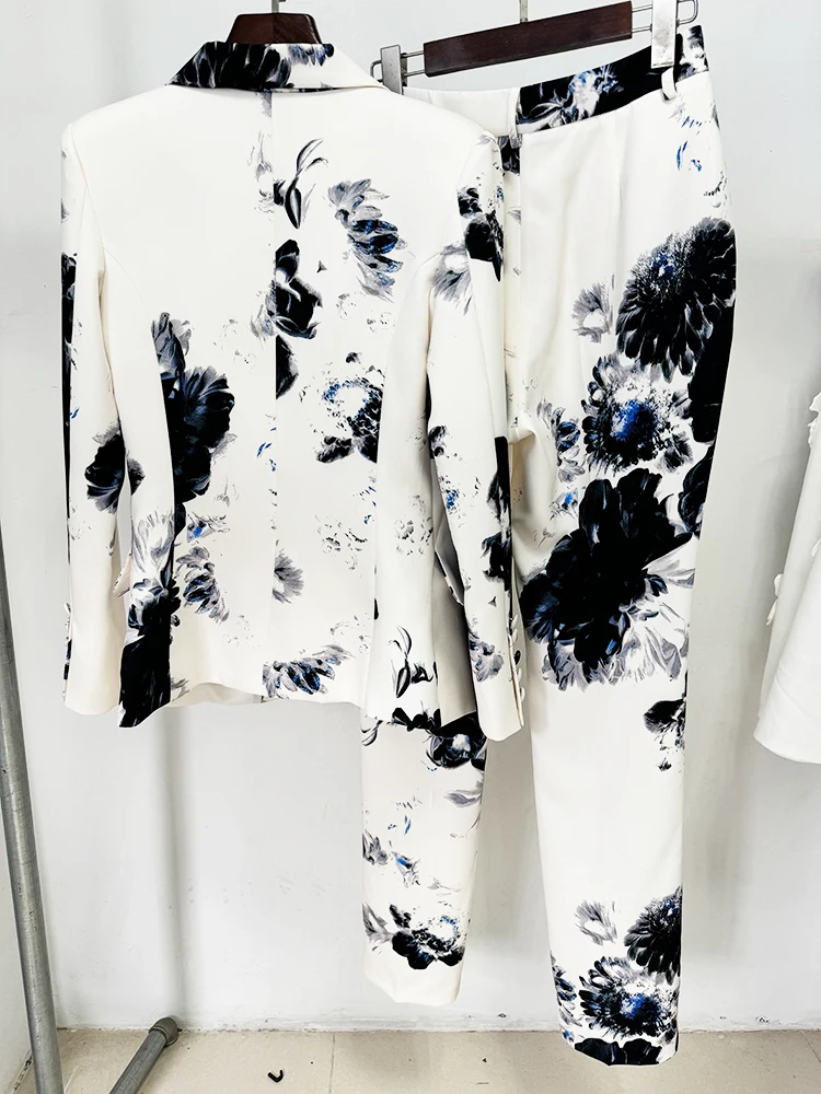 Modern Fusion Designer Women Suit Jacket Pencil Pants Set 2Pcs