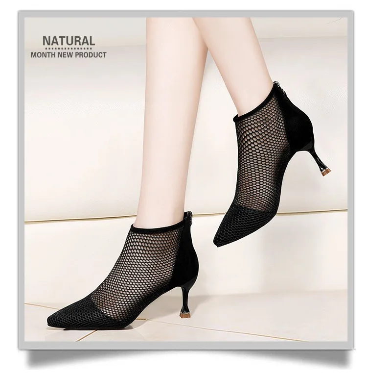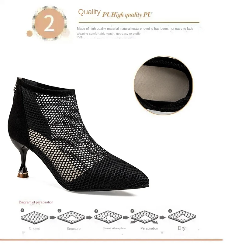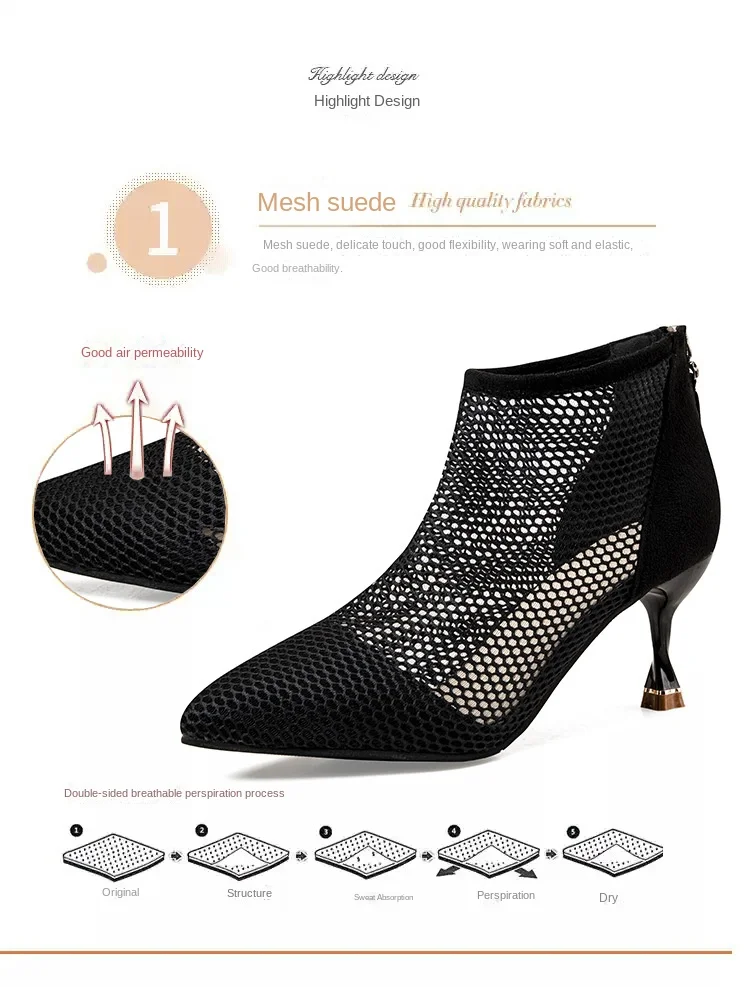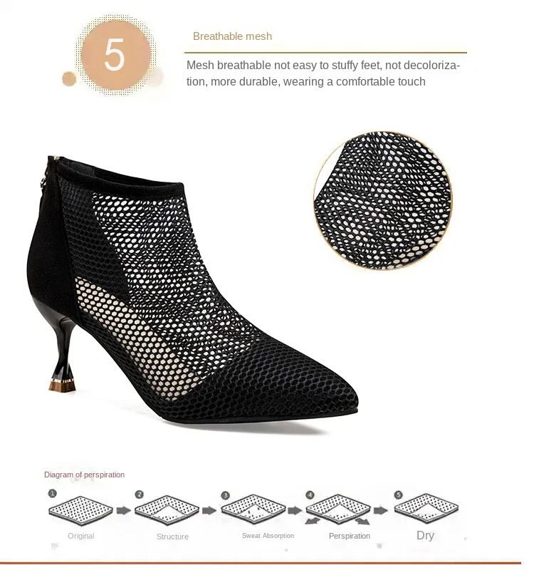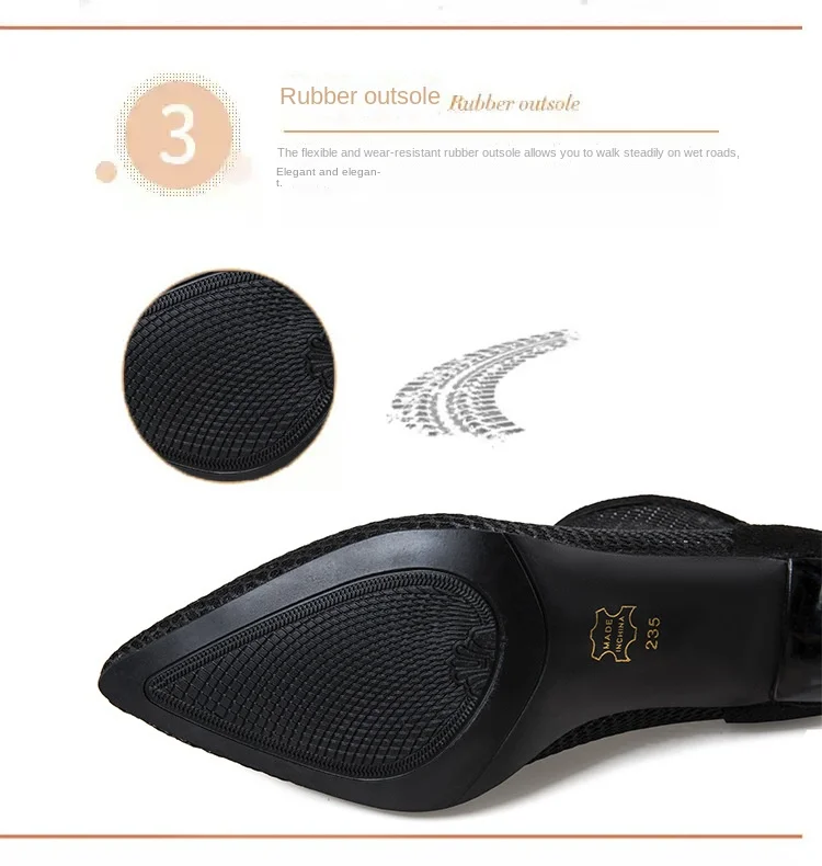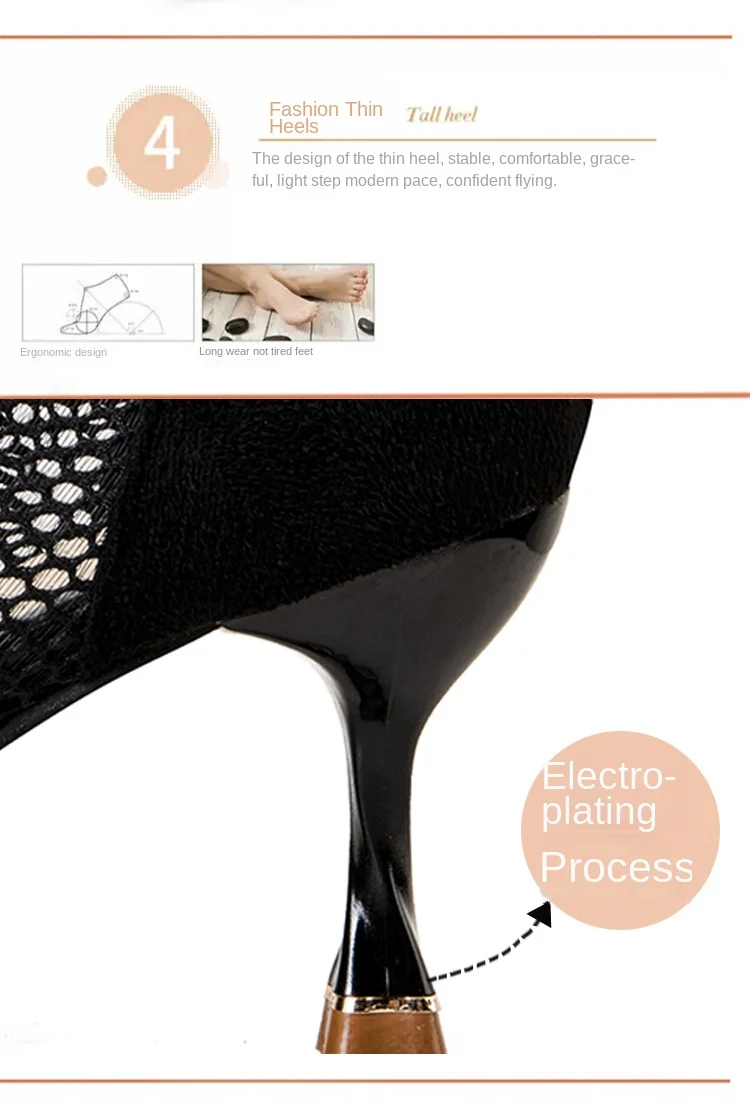 Modern Black Ballroom Dance Shoes for Women = Hollow Breathable Stiletto Hard Sole Cusp Fashion Wear