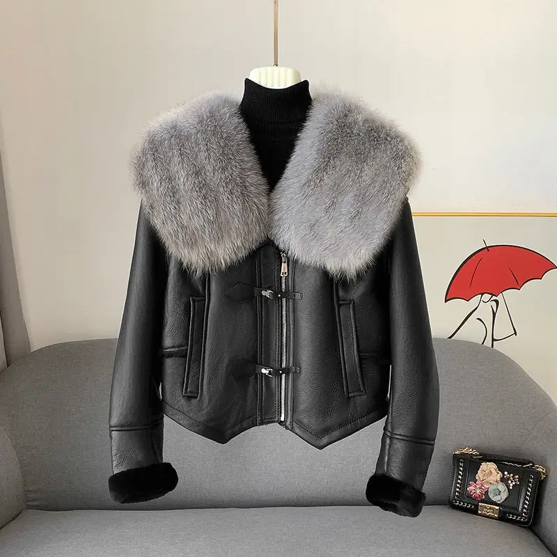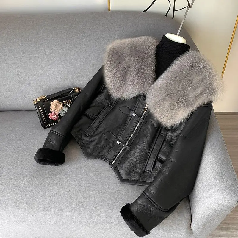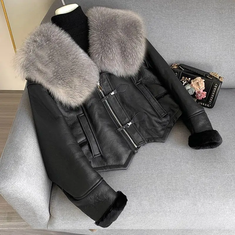 women’s fur leather jacket, new fur coat for women, leather jacket with fur collar, winter coats for women, stylish leather jackets, luxury women’s outerwear