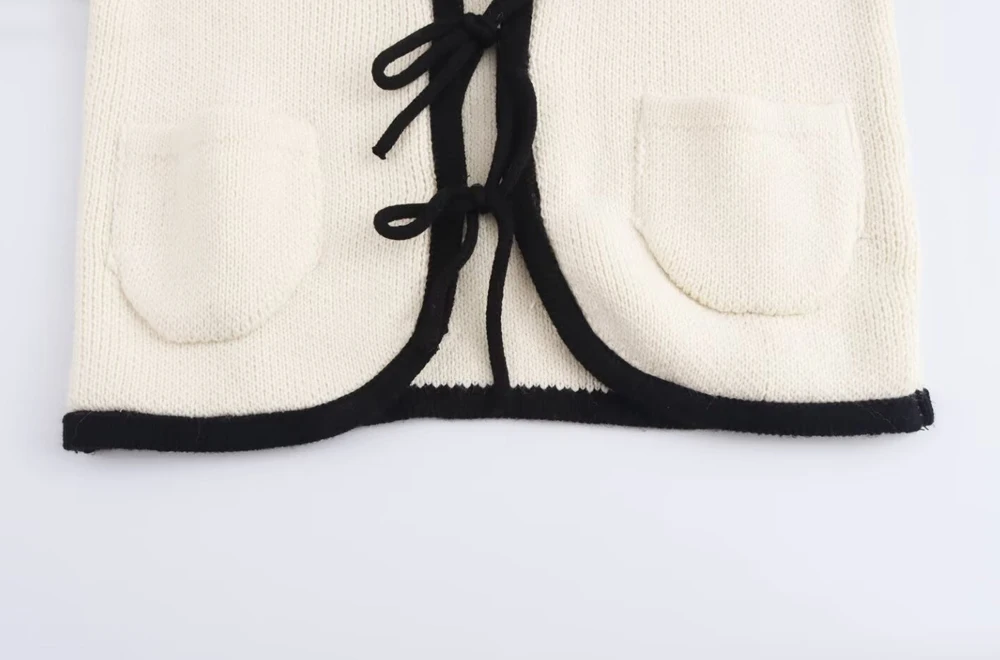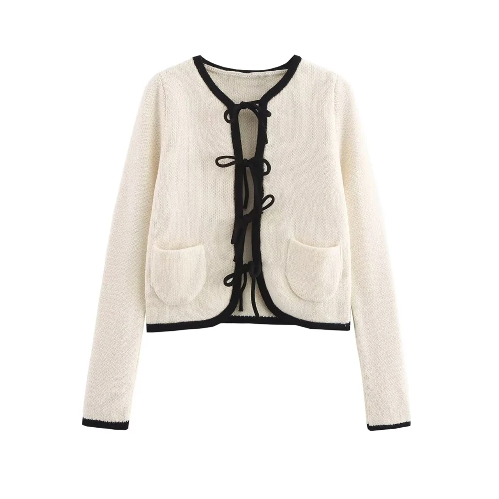 Womens Long Sleeve Knit Cardigan with Ties, Front Patch Pockets, New Female Outerwear